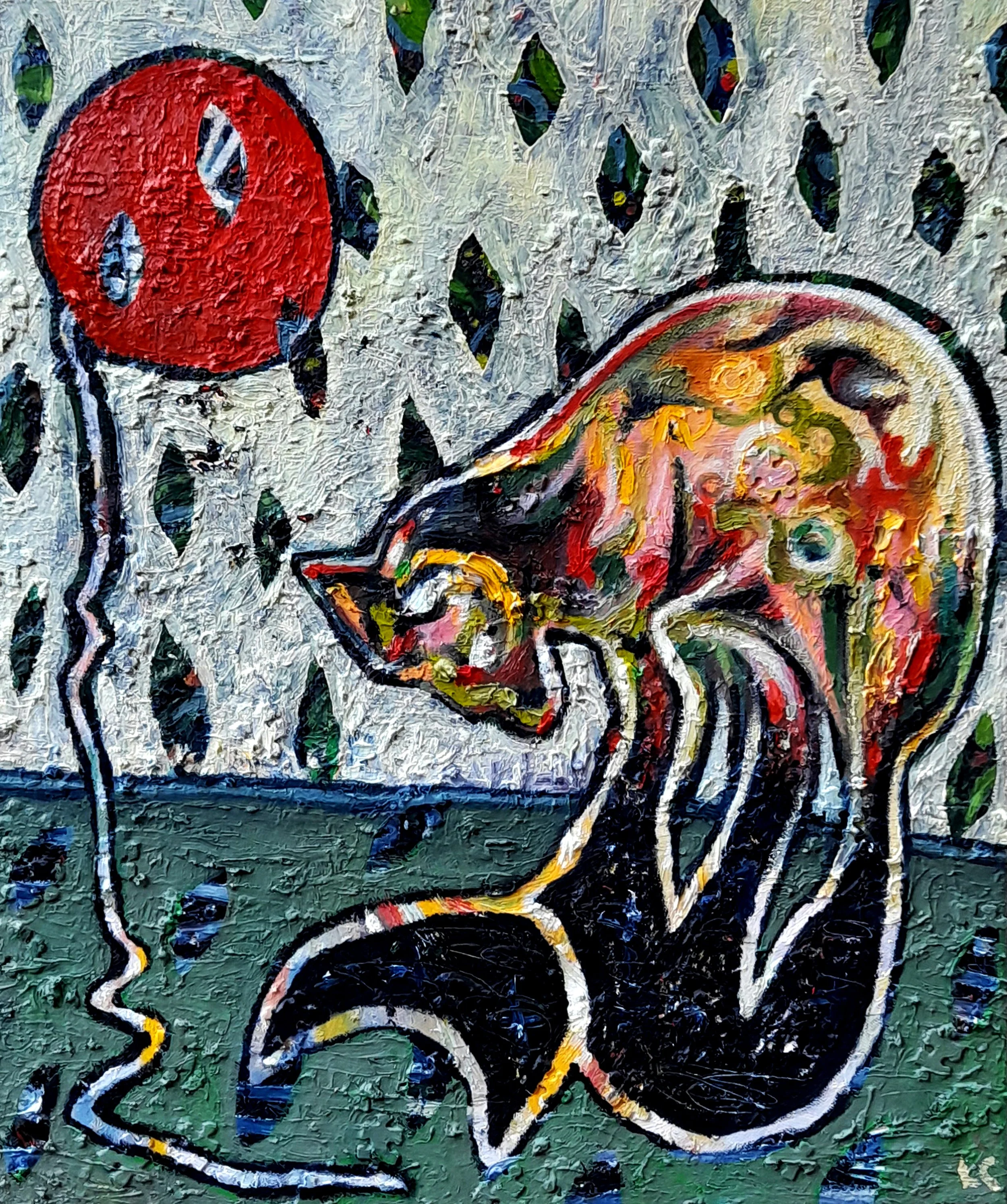 'The Shadow's Cat' / 51 x 61cm / Oil and collage on canvas (2022) 🔴